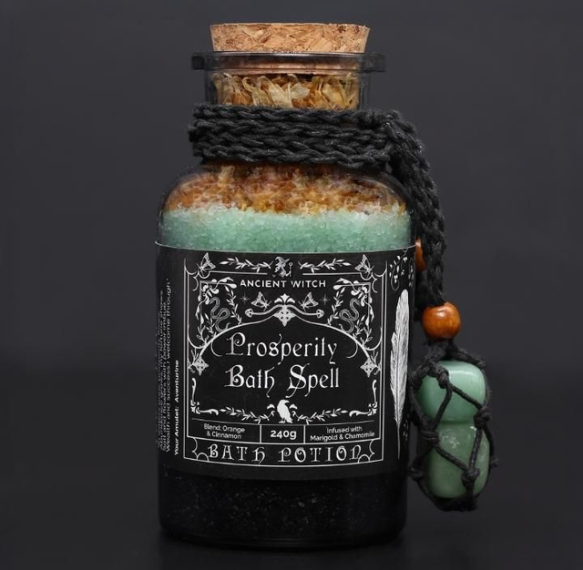 Attract luck, growth, and good fortune with the Ancient Witch Prosperity Bath Spell Potion - a radiant ritual blend inspired by traditional witchcraft prosperity spells.