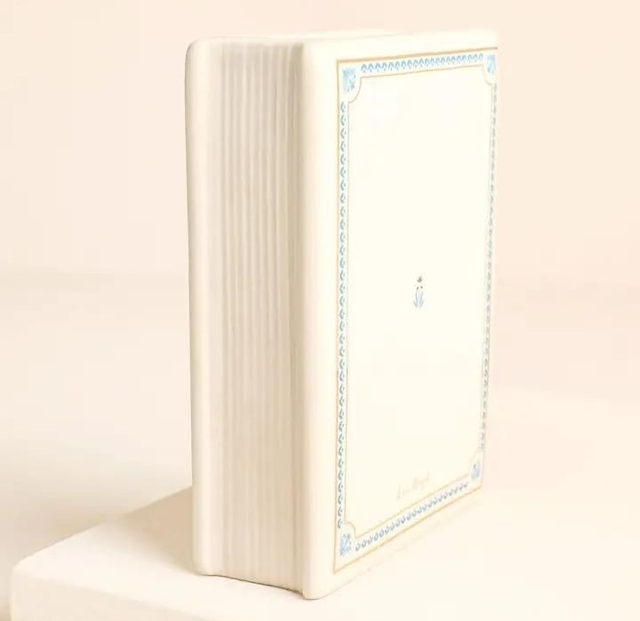 A charming mini vase shaped like a book Featuring gold lettering and blue outlines Features a burgundy and blue floral pattern Perfect for fairytale lovers.